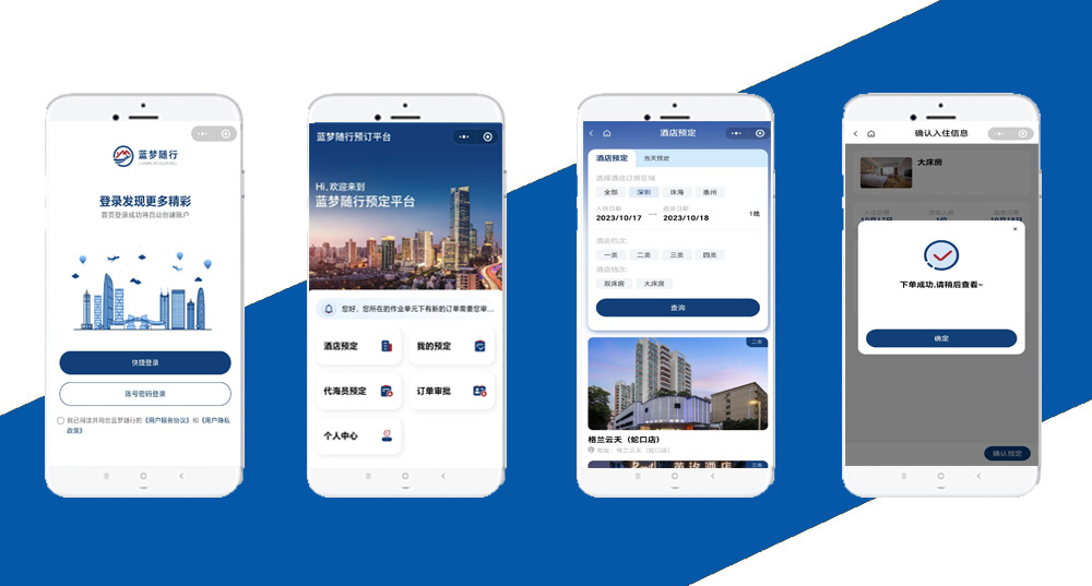 藍(lán)夢隨行是一款城市旅游酒店預(yù)訂小程序。